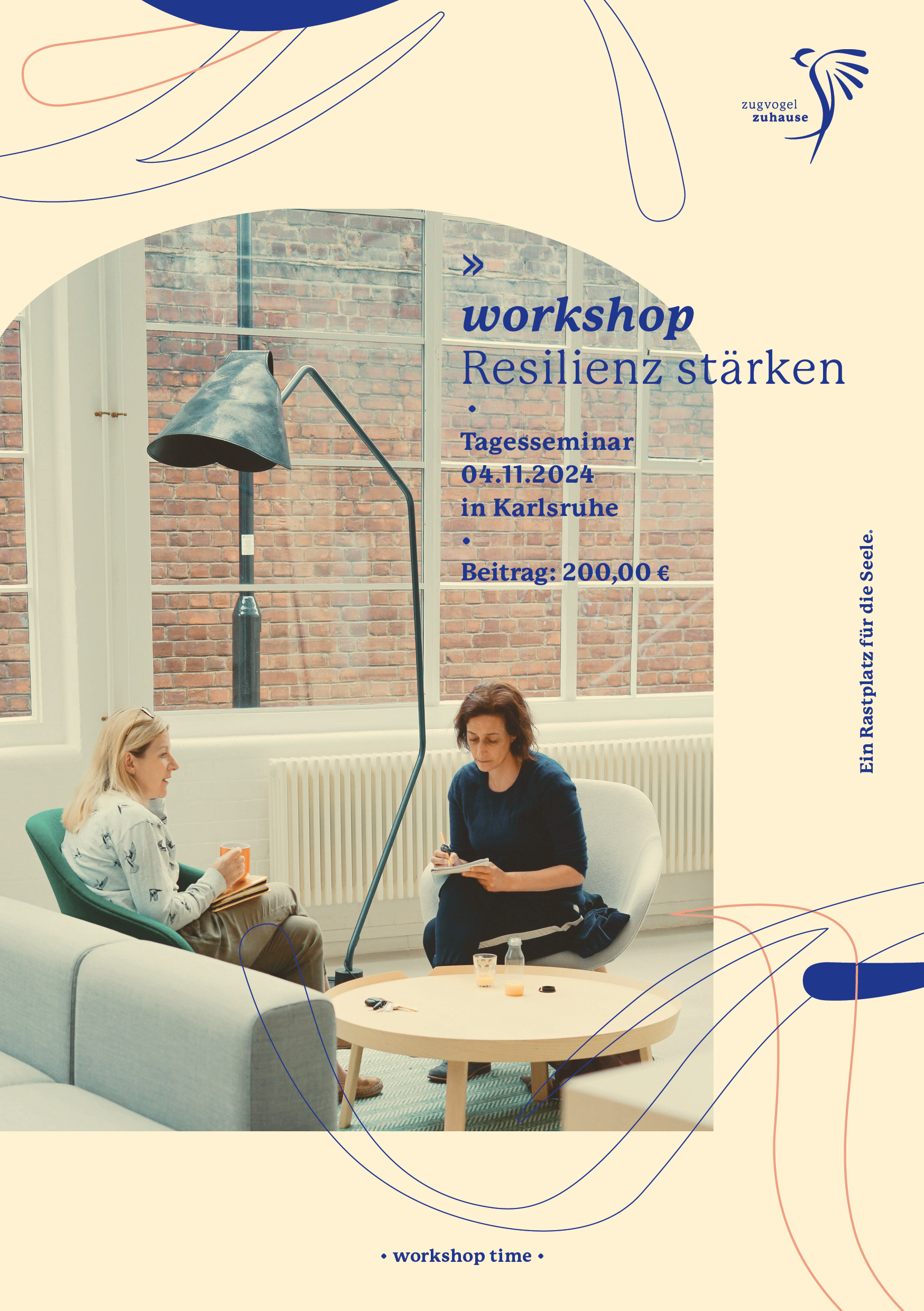 Zugvogel zuhause begleitet Menschen auf ihrer inneren Reise und bietet ihnen einen Ort zum Ankommen, Innehalten und Krafttanken – online wie offline.